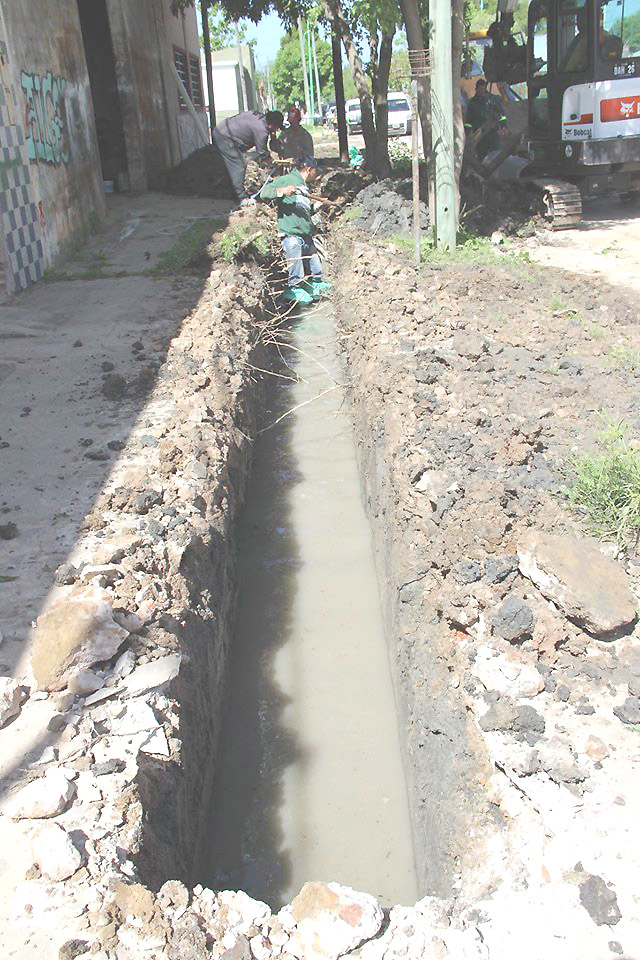 Íntegramente con personal y maquinaria municipal, en esa esquina se rompió todo y se realizó a nuevo el viejo hormigón agrietado, así como los conductos de recolección de lluvias que en muchos caos se encontraban rajados por el paso del tiempo, con la consecuente filtración de tierra y basura que ayudan a su obstrucción.