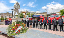 En el acto, que fuera encabezado por el Jefe Comunal, Mario Secco, junto al Presidente de la entidad, Ricardo Arenas, los miembros del Cuerpo Activo, la Escuadra de Reserva y la Comisión Directiva de la Institución, se presentó el último camión adquirido por Bomberos, que se suma a la importante flota que previene y cuida a la población de la ciudad. Como es habitual, la celebración se hizo en torno al Monumento al Bombero, ubicado sobre la rambla de calle Ortiz de Rosas, frente al Cine Teatro Municipal.