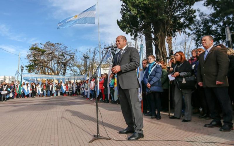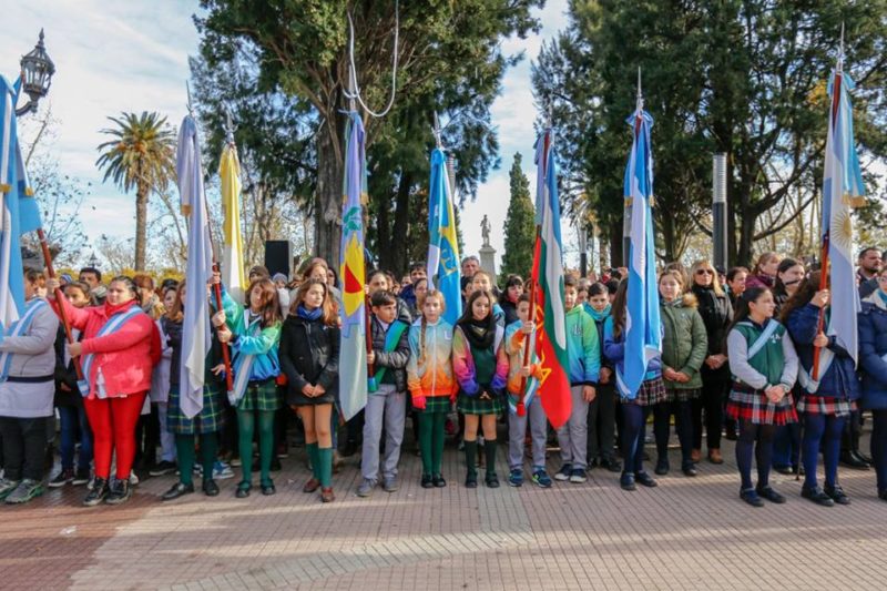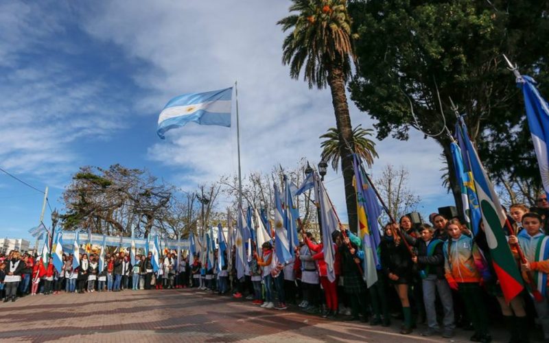 Acompañados por autoridades municipales, educativas, familiares y vecinos de la ciudad, cerca de mil chicos prometieron lealtad y fidelidad a la Patria en el acto por el Día de la Bandera, en el que también estuvieron presentes los bomberos voluntarios locales, ex combatientes de Malvinas y representantes de Prefectura.
