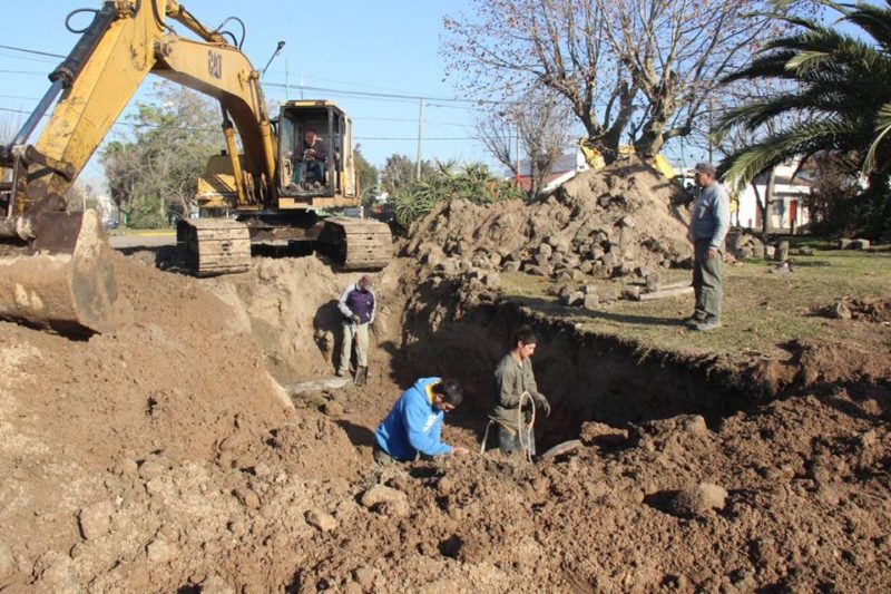 Cuadrillas de trabajadores municipales realizan dicho trabajo en la calle 126 y 49 de la localidad diquense, a través de la colocación de una doble batería de caños de 800.