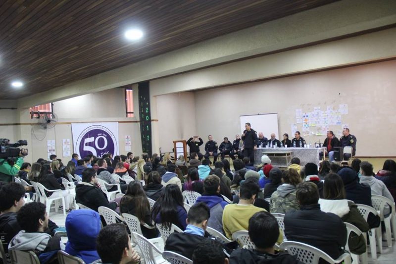 Con el objetivo de concientizar y ponerle un freno a las falsas amenazas de bomba, se llevó a cabo una reunión en la Escuela Secundaria N°1 entre los distintos estamentos de la Policía, el Municipio de Ensenada, representantes de la Dirección General de Escuelas, integrantes de la Ayudantía Fiscal, docentes, padres y alumnos de todas las instituciones educativas de la ciudad.