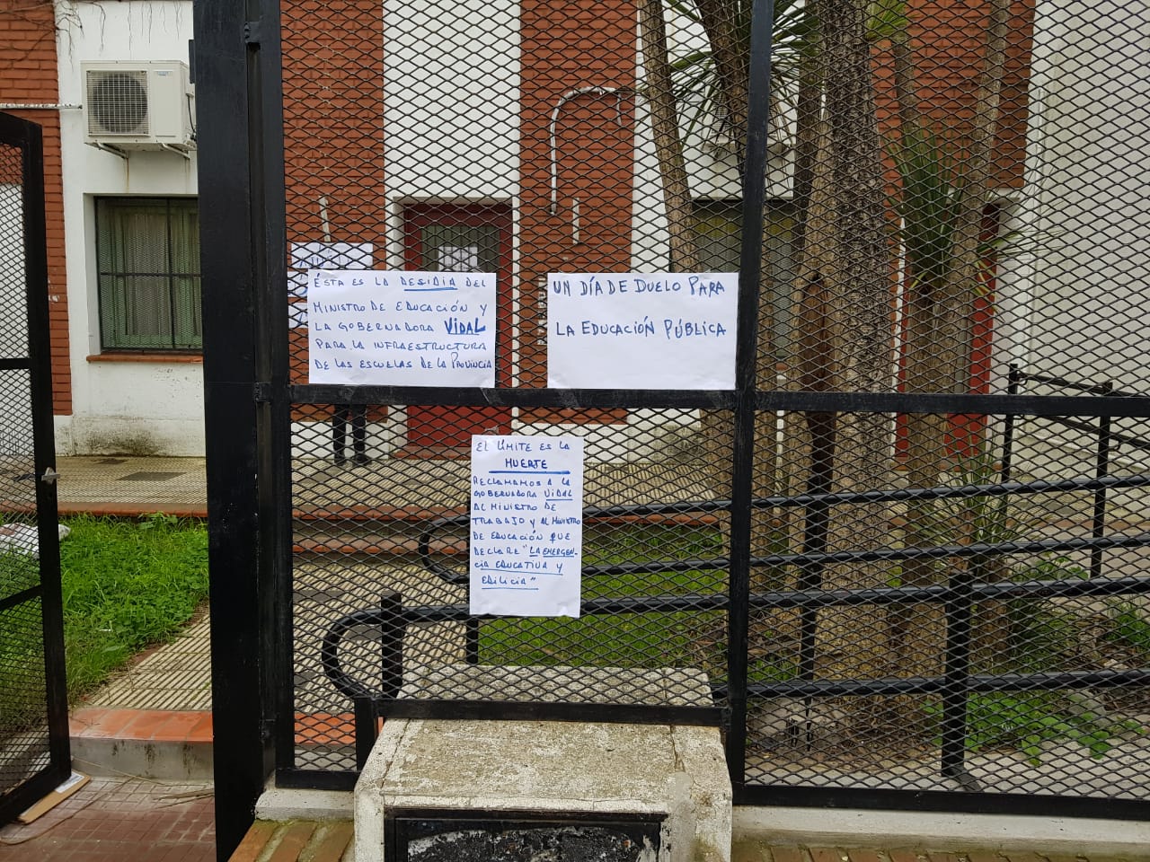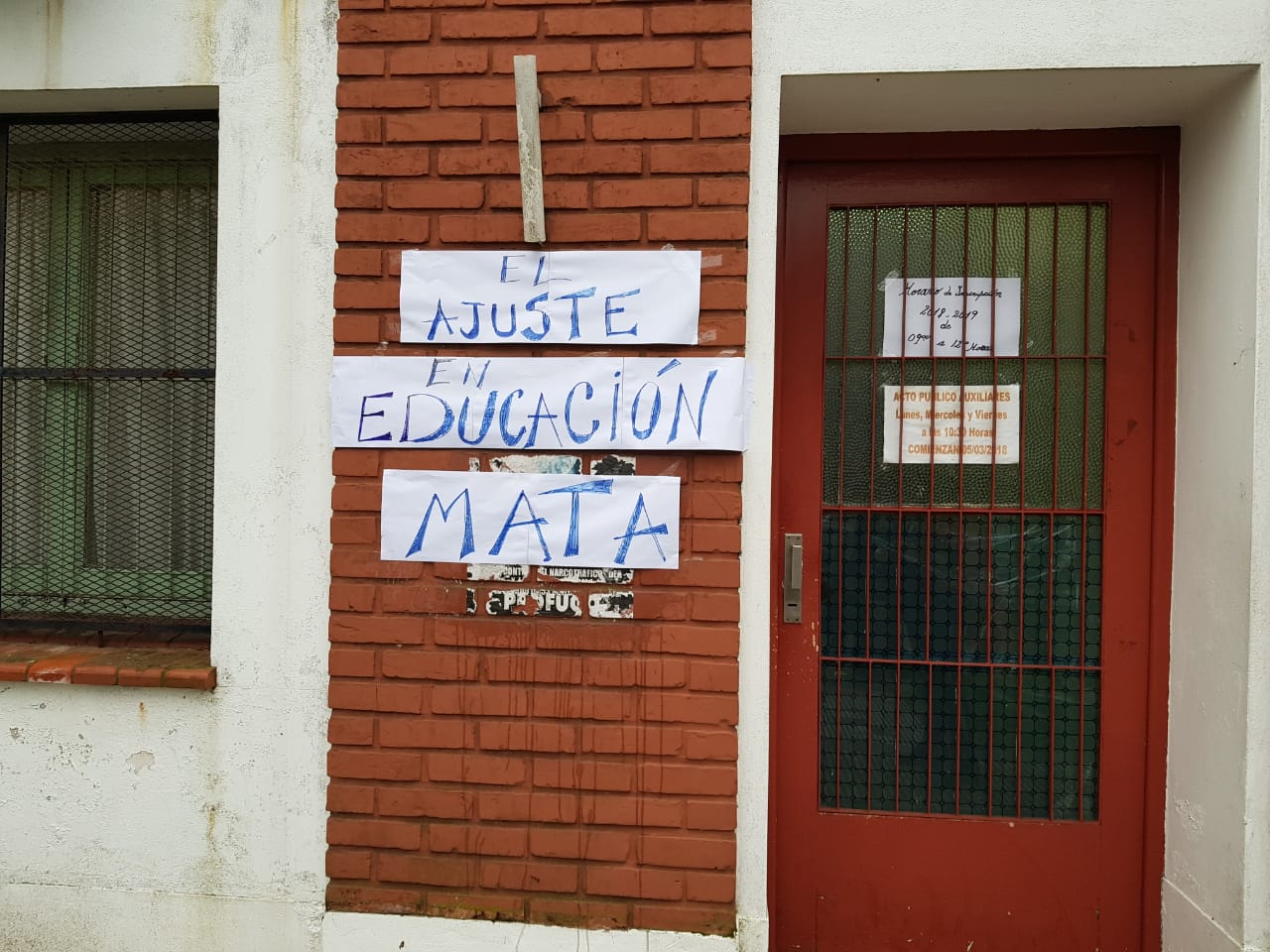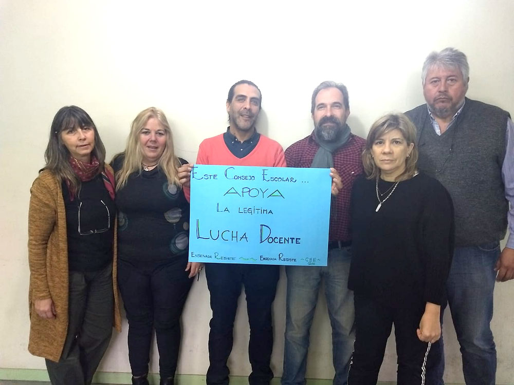 Mientras tanto, en el Consejo Escolar de Ensenada los miembros del cuerpo expresaron su postura y colocaron carteles en las puertas del edificio para recordar a los vecinos que “El Ajuste en Educación Mata”, en clara alusión a los dos fallecidos en la Escuela N° 49 de Moreno, donde en la víspera perdieron la vida un Auxiliar y una Docente vicedirectora, por una explosión generada a causa de un desperfecto denunciado una y otra vez, por el que no se habían obtenido respuestas del responsable de las escuelas, que es la Provincia de Buenos Aires, que para colmos mantiene intervenido el Consejo Escolar de esa ciudad desde hace un año.