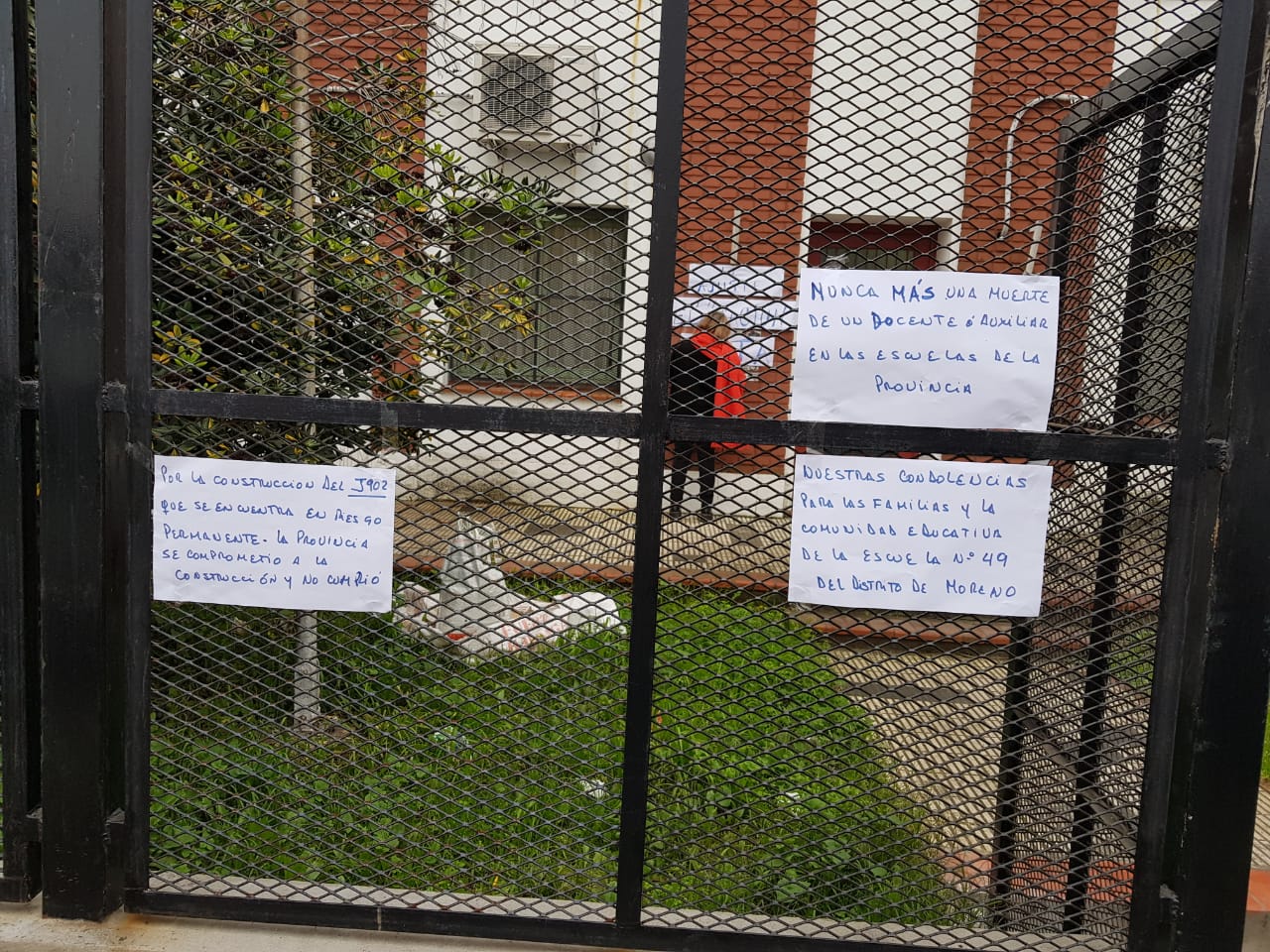 “En total consonancia con lo que pasó en la Escuela 49 de Moreno, donde por desidia del ministro de Educación y la gobernadora Vidal, en cuanto a infraestructura se refiere, lamentablemente perdimos una compañera vicedirectora y un compañero auxiliar que también daba clases en un Cetro de Formación Profesional, en el área de Carpintería”.