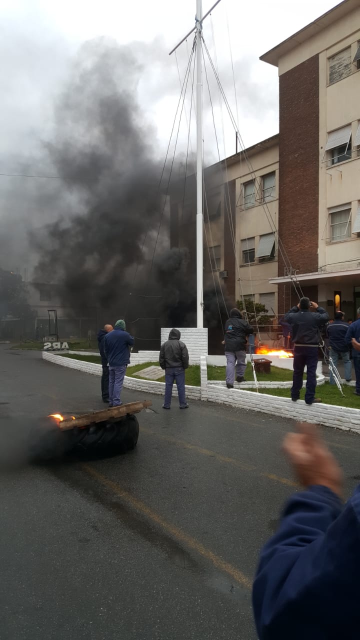 En el marco del mismo plan de lucha y en reclamo “de insumos y de los reintegros de los descuentos en los salarios”, según fuentes oficiales del sindicato que los nuclea, los trabajadores del Astillero reclamaron durante la mañana de este lunes dentro de la Empresa, frente al edificio de Dirección, donde quemaron cubiertas y basura esperando ser atendidos por las autoridades a quienes pretendían entregarles un petitorio y que nunca llegaron.