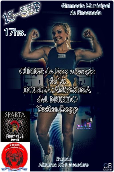 La doble Campeona en la categoría “minimosca” de la Asociación Mundial y de la Organización Mundial de Boxeo, Yesica Bopp, llegará a Ensenada a dar una “Clínica” de este deporte, donde vecinos y fanáticos podrán disfrutar de sus experiencias y conocer personalmente a esta gran referente del Box universal.