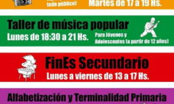 “Durante este año, y gracias al acompañamiento y el compromiso de la Municipalidad de Ensenada, de la mano de Mario Secco, se trabajó con la Subsecretaria de Cooperativas para ir poniendo en condiciones las Instalaciones del salón de la planta alta y sus dependencias, que son utilizadas como secretaria y aulas”. Ya con las instalaciones puestas en condiciones, comenzaron a desarrollarse diferentes actividades de inclusión a través de la educación y la cultura. Así, desde el comienzo de 2018 funcionan en el centro: Alfabetización, Terminalidad, Acreditación y Certificación Primaria, dependientes del CEA Nº 703. También FinEs 2, Secundario y Bachillerato con orientación en oficios, a lo que se suman Talleres como Curso básico de Fotografía y Taller de Iniciación a la Música, para jóvenes y adultos.