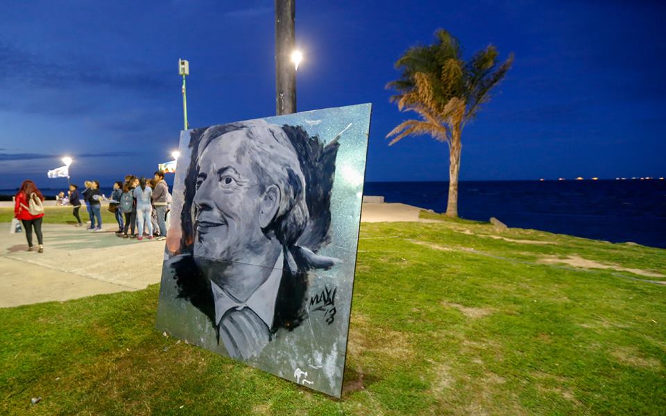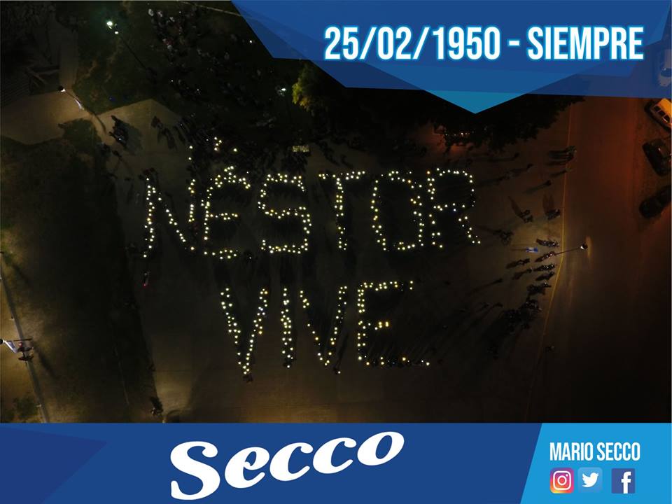 Allí, entre todos y todas escribieron la frase “Néstor Vive”, que ya entrada la noche fue remarcada con la linterna de los celulares de cada una de las personas sobre las letras, y captada desde la cámara de un dron, dejando una increíble postal junto al río.