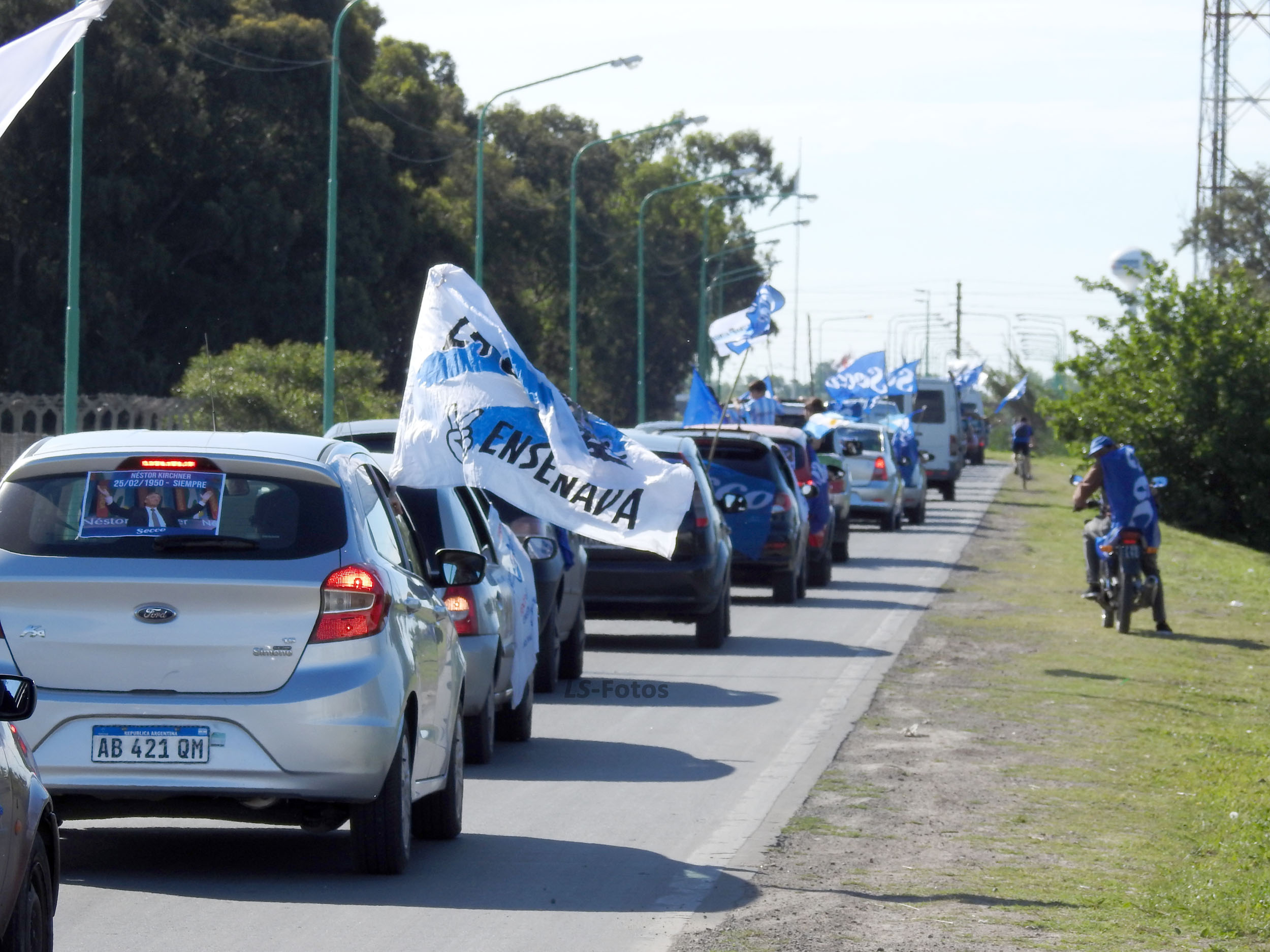 A media tarde una enorme fila de autos de todo el espectro “Sequista” partió del local que lleva el nombre del homenajeado, en Bossinga casi Perú. En su paso por la rotonda de 120 y 32, a la comitiva ensenadense se anexaron otra importante cantidad de vehículos de Berisso y La Plata, que transitaron hasta el final de la Diagonal Mercante (74) hacia Punta Lara, donde estaba previsto el acto central: en el Mirador Néstor Kirchner.