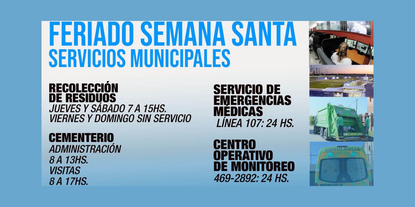 Desde la Municipalidad de Ensenada se informó cuál será el cronograma de funcionamiento de los servicios, durante los días feriados de Semana Santa en la ciudad. -Recolección de Residuos: Jueves y sábado: de 7 a 15 hs. Viernes y domingo: sin recolección -Cementerio Municipal: Administración: de 8 a 13 hs. Visitas: de 8 […]