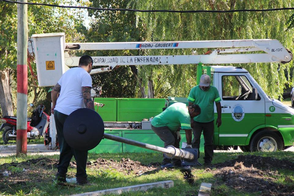 Colocan columnas de alumbrado led en plazas de Punta Lara