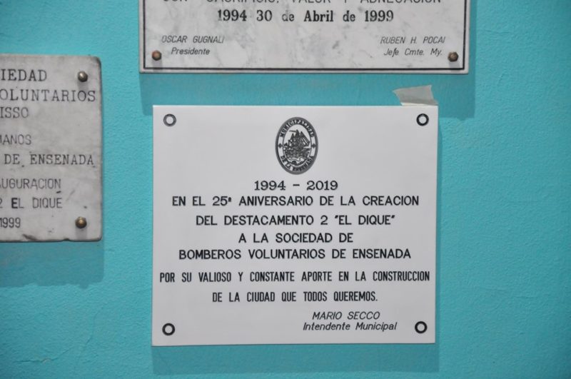 La Sociedad de Bomberos Voluntarios de Ensenada celebró el 25° Aniversario del Destacamento N° 2 de la localidad de El Dique con una cena de camaradería, descubrimientos de placas y entregas de diplomas en reconocimiento a su personal.