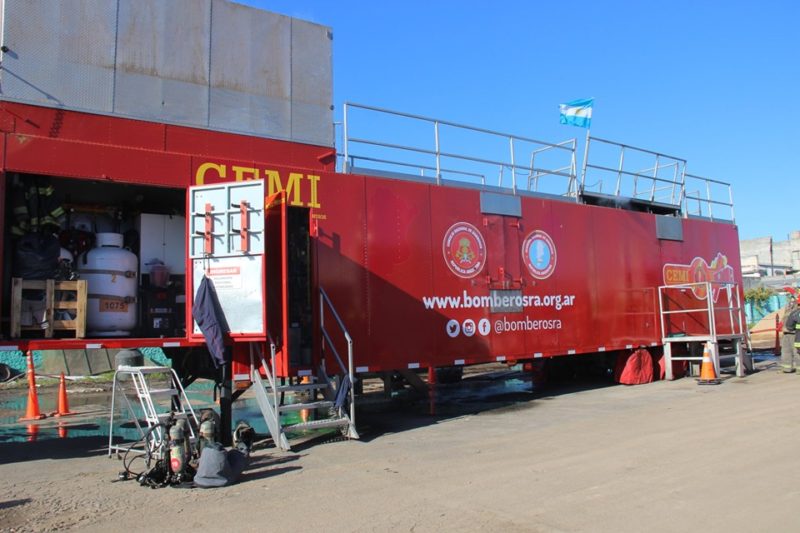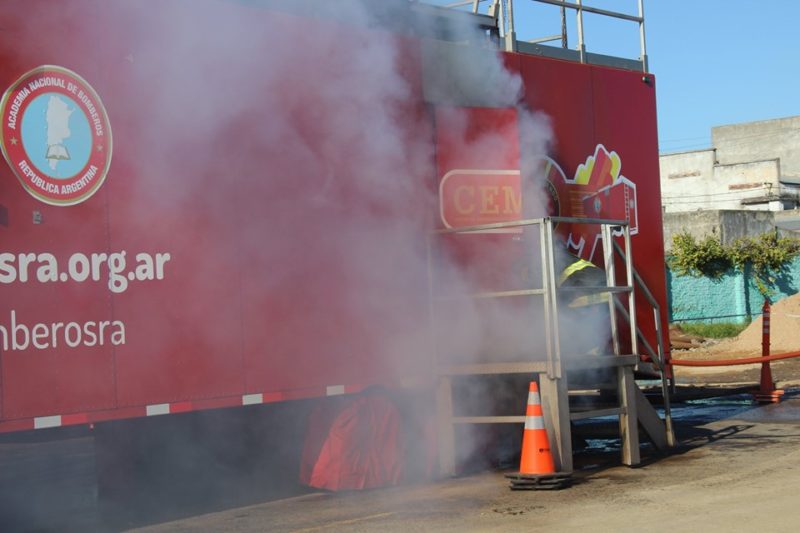 Durante los días lunes, martes y miércoles, el Centro de Entrenamiento Móvil de Incendios de la Academia Nacional de Bomberos Voluntarios de la República Argentina exhibió su único equipo simulador de Sudamérica en el predio de la feria de la calle San Martín.