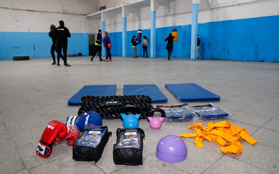 En esta oportunidad, se hizo entrega de materiales deportivos para la práctica del boxeo femenino que se realiza en la institución, en el marco de uno de los servicios que ofrece la entidad a los vecinos del barrio.
