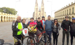 Los vecinos y pareja Rodolfo Urbe (50 años) y Mabel Gómez (49), ambos ciclistas de Ensenada, emprendieron el día 20 de junio su propia peregrinación en Bicicleta a la ciudad de Luján, con el objetivo de bendecir tres juegos de banderas para ser entregadas a distintos lugares neurálgicos del quehacer diario de la comunidad local.