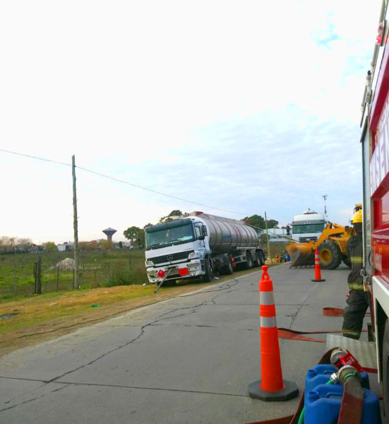 Cerca de media mañana de este jueves se montó un mega operativo con otro camión puesto a la par para trasvasar de un tanque a otro de los camiones este nocivo producto, con el montaje de los elementos de seguridad necesarios. El despliegue incluye maquinaria municipal, camiones de bomberos y personal de la empresa ZHP; además innumerables elementos reglamentarios en una situación así.