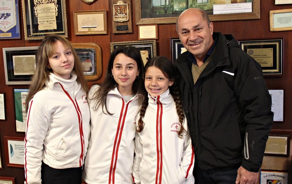 Junto con la profesora Roxana, las deportistas Carolina De Rose, Florencia Romano y Sofía García charlaron con el jefe comunal acerca de la importancia del intenso entrenamiento y su compromiso con el deporte y que disfrutan de la actividad deportiva que practican a diario.
