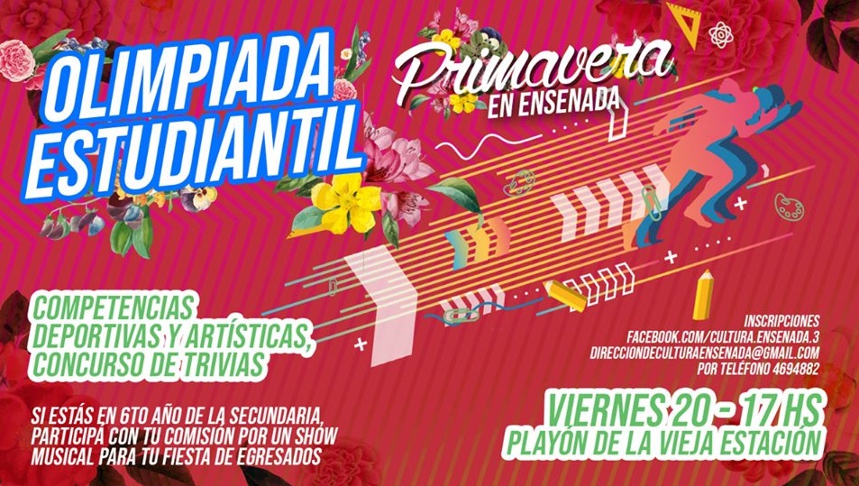 Todos los alumnos de sexto año de las escuelas secundarias de Ensenada fueron invitados a participar en las competencias deportivas, artísticas y trivias que se realizarán el viernes 20 de septiembre desde las 17hs, en el marco de los festejos por la primavera en el Playón del Centro Cultural La Vieja Estación.