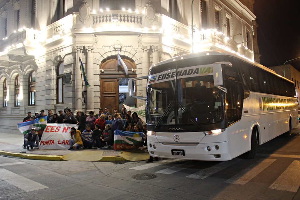 Durante las primeras horas del día, los alumnos se juntaron en la puerta del Palacio Municipal para trasladarse posteriormente en el colectivo municipal que dispone la comuna ensenadense para este tipo de viajes.