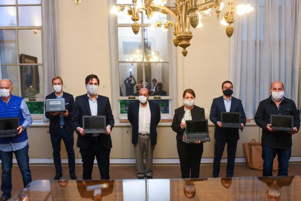 El ministro Trotta firmó una serie de convenios con un grupo de intendentes de las localidades de la Tercera Sección de la provincia de Buenos Aires, para cumplir con la entrega de los equipos en el marco de la pandemia, en lo que será una primera etapa  destinada a estudiantes secundarios sin acceso a este tipo de tecnologías.