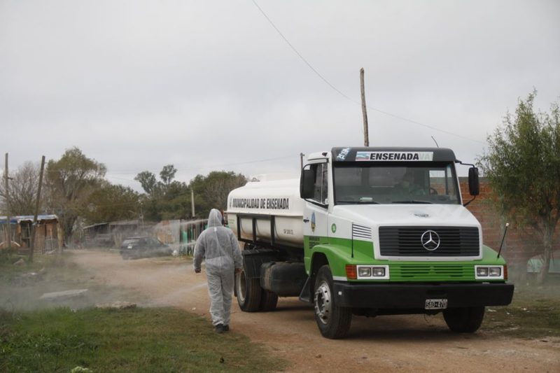 En el marco de las diferentes acciones que lleva adelante para prevenir la propagación del Coronavirus, la Municipalidad de Ensenada realiza tareas de desinfección a través de un camión cisterna en las calles de los Barrios Piria, El Molino y El Zanjón, en la localidad de Punta Lara.