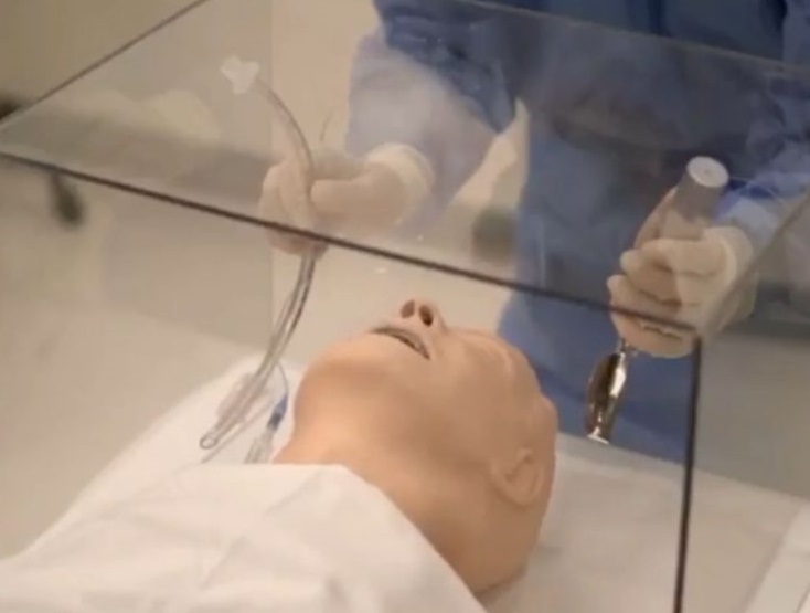 Se trata de cubículos que aíslan a los médicos mientras realizan prácticas de intubación a los infectados por coronavirus.