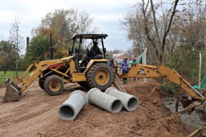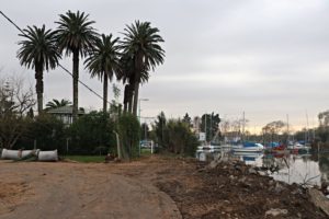 A la altura de las compuertas del Club Náutico y en el marco de la ampliación y puesta en valor de la calle Antonio Silva en los márgenes del Arroyo Doña Flora, avanzan los trabajos de puesta en valor de este sector de la ribera, donde se pavimentará e iluminará en el futuro.