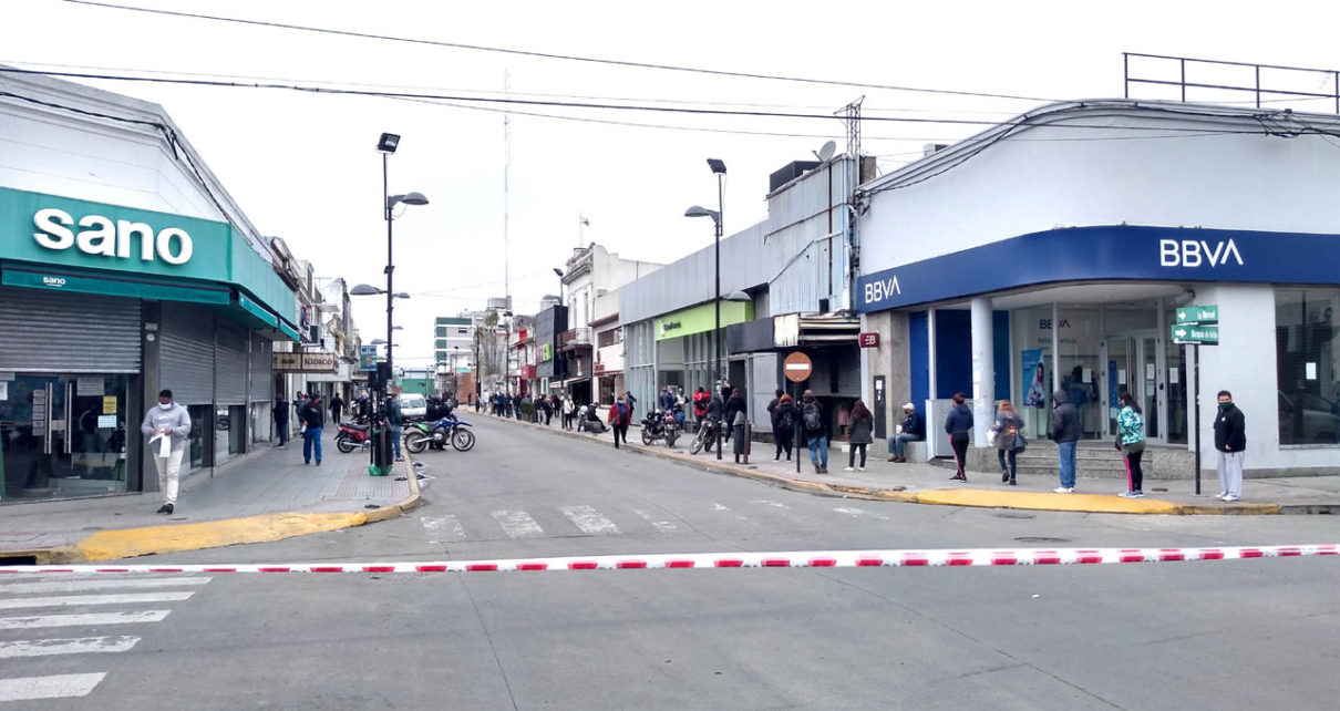Distanciamiento: con largas filas sobre calle La Merced y mucha precaución se paga el IFE