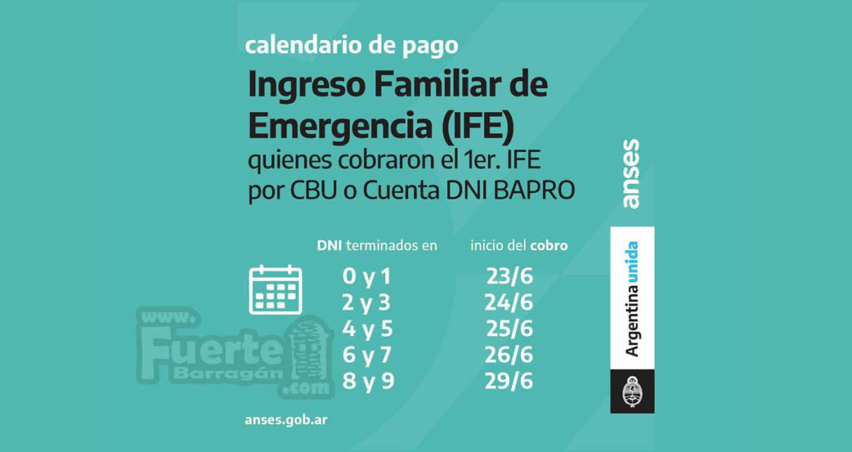 A partir de este martes 23 de junio, comienzan a cobrar el segundo pago del Ingreso Familiar de Emergencia (IFE) sólo aquellas personas que eligieron la opción CBU en el primer cobro del beneficio, y sus documentos terminen en 0 y 1. Mientras tanto, desde la ANSES nacional se informó que quienes deseen consultar su […]