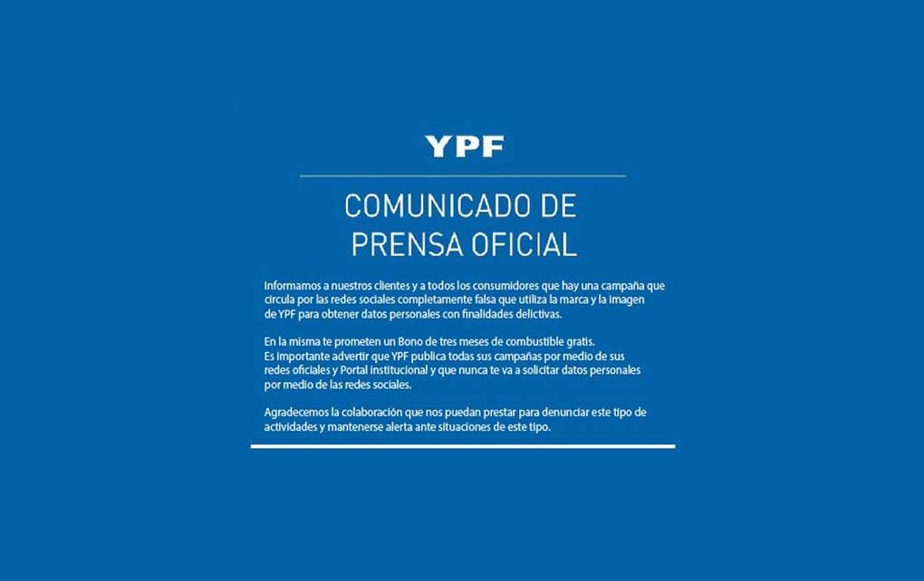 YPF alerta sobre falsa campaña que promete “combustible gratis”