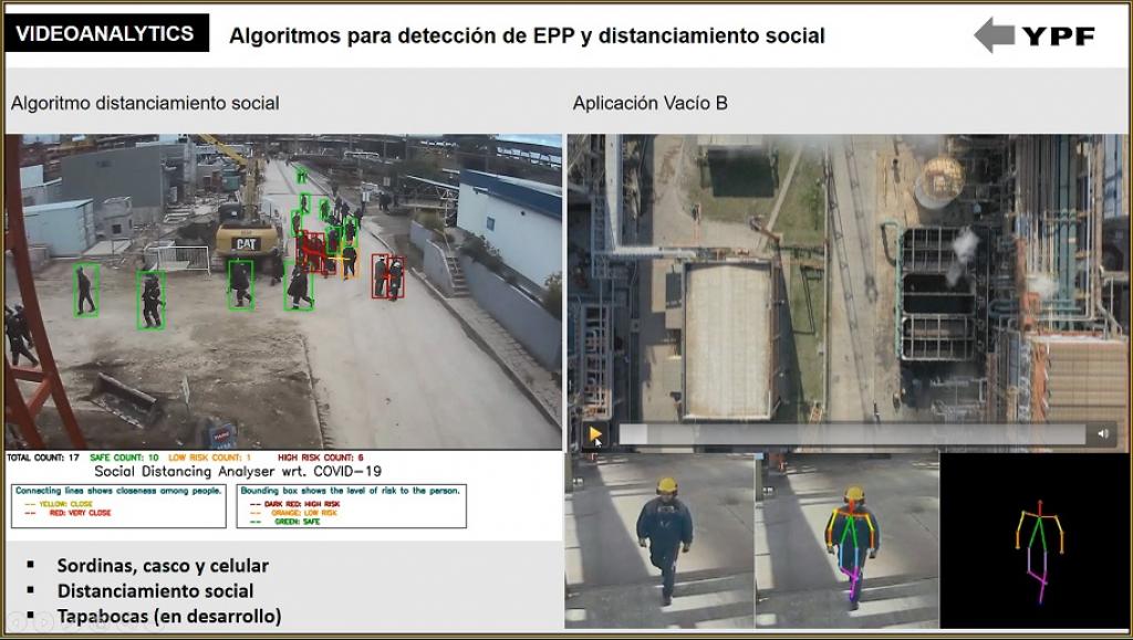 Durante la exposición online realizada días atrás, Federico Martínez (Seguridad Operativa del Complejo Industrial La Plata) y Daniela Gotti (Salud Ocupacional) presentaron los principales puntos del protocolo de Higiene y Seguridad, las distintas medidas que se llevaron adelante en Refinería y las diferentes tecnologías que se están aplicando para asegurar el aislamiento preventivo en el ámbito del trabajo, como por ejemplo el control de temperatura en los ingresos.