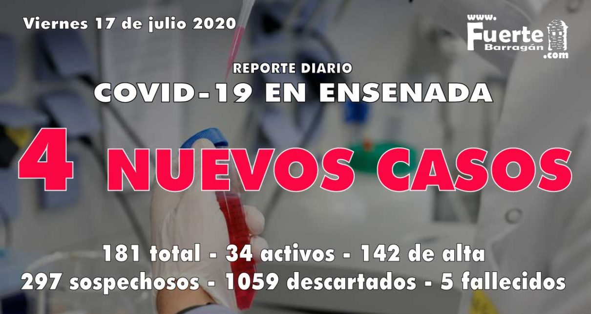 En las últimas 24 horas se registraron 4 casos positivos de Coronavirus en Ensenada, sindo afectadas: una mujer de 54 años, un hombre de 36 años y otro de 41 años de barrios de Ensenada Centro, y una mujer de 43 años de El Dique.