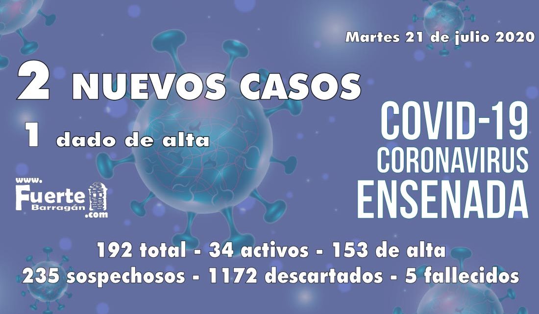 Según el reporte diario que emite la Municipalidad de Ensenada, este martes 21 se registraron 2 nuevos casos positivos de Coronavirus. Se trata de una señora de 61 años y un joven de 21 años de barrios de Ensenada Centro. Asimismo, se dio el alta a 1 vecino de El Dique.
