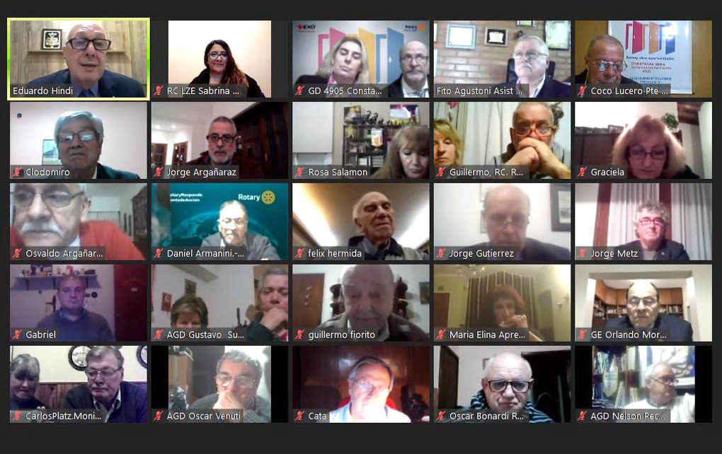 Además, se contó con la presencia de la Gobernadora del Distrito 4905 de Rotary Internacional, Constanza Sena, ex gobernadores rotarios e invitados especiales. Luego de la Asunción; el Socio Clodomiro Cruz Valerio hizo la presentación del orador de la noche ex Gobernador rotario Eduardo Carlos Hindi, quien cuenta con un extenso currículum, entre los que se destaca: Abogado, egresado de la  Universidad Nacional de Buenos Aires, ejerce su profesión en el ámbito privado. Titular de un Estudio Jurídico (Fundado en el año 1987). Fundador del Comité Argentino Pro-Tribunal Internacional del Medio Ambiente en el año 1992 integrándolo desde entonces. Miembro del Rotary Club Catedral al Sur. Rotario desde el año 1985. Fue Gobernador en el período 2001/2002 del Distrito 4890. Es Socio Paul Harris múltiple y Benefactor; entre otros variados títulos, brindado un charla que fue aplaudida por toda concurrencia virtual.