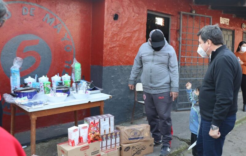 Posteriormente, Secco y Arroyo junto a la secretaria municipal de Desarrollo Social Celina Ferella, visitaron el comedor del Club Infantil 5 de Mayo, institución con la que el Municipio trabaja para llegar a los vecinos que más necesitan.