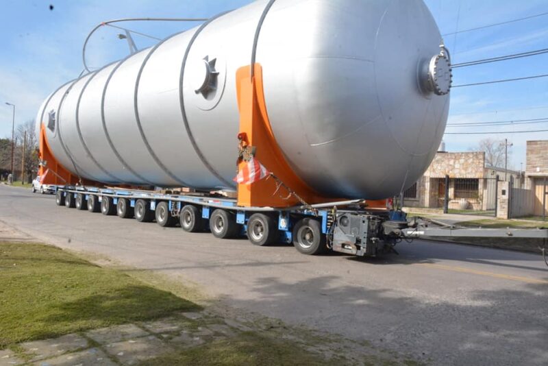 Se trata de dos equipos de aproximadamente 60 toneladas de peso, 6 metros de ancho y 7,5 de alto que se trasladaron por la vecina ciudad de Berisso.