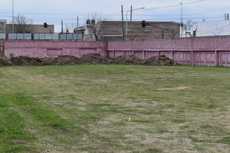 El club contrató a una empresa que se encarga de sacar una capa de pasto de unos 10 centímetros y luego se coloca una capa de unos 30 cm. de tierra y tosca, que será compactado y nivelado para dejar una plataforma que luego será cubierta por cemento.