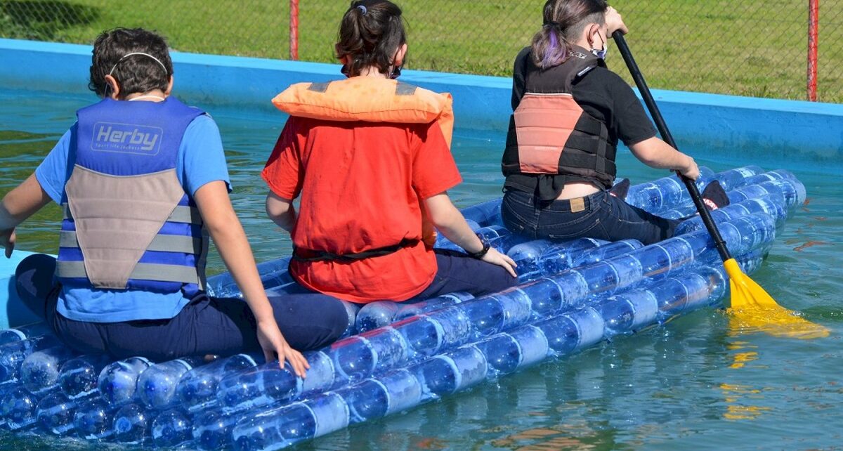 Estudiantes de primer y segundo año de la Escuela Técnica del Astillero Río Santiago crearon una pequeña embarcación a base de sifones de plástico reciclados y ganaron un concurso nacional sobre ecología.