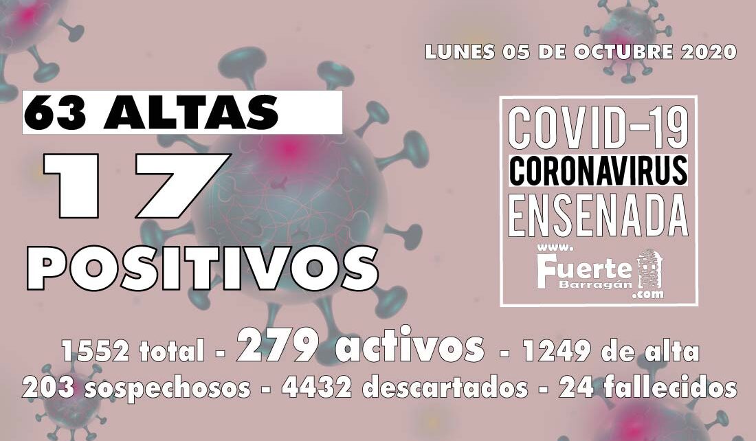 Nuestra ciudad registró en el comienzo de la semana, según el nuevo reporte diario que emite la Municipalidad de Ensenada, 17 nuevos casos positivos de Coronavirus, oficializados este lunes. Asimismo, se dieron 63 pacientes de alta y nuevamente No se registraron fallecimientos. El resto de los números indican que quedan 279 pacientes activos de Covid19 […]