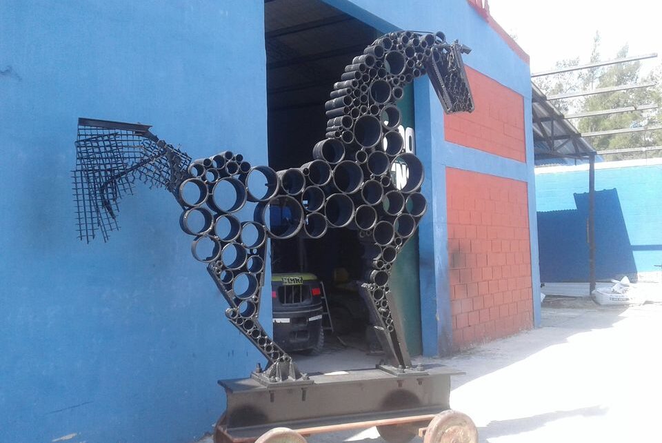 Cooperativistas de Barrio Mosconi crearon esculturas con hierro reciclado