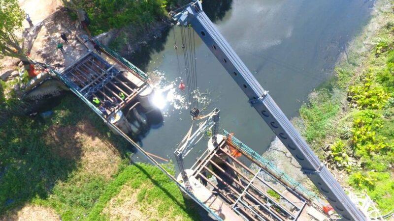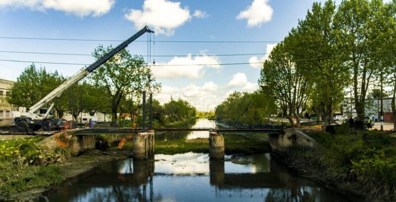 El Municipio de Ensenada instaló el segundo arco del Puente Holandés para poder colocar las estructuras móviles y el piso de quebracho.