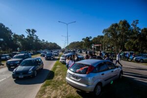 El camino a Punta Lara por Diagonal 74 se vio desbordado  de gente que quiso disfrutar la jornada al sol este domingo. Cientos de autos y miles de vecinos pasaron la tarde y las imágenes captadas por las cámaras de seguridad de la Municipalidad de Ensenada sugieren que el distanciamiento social se ha respetado poco.