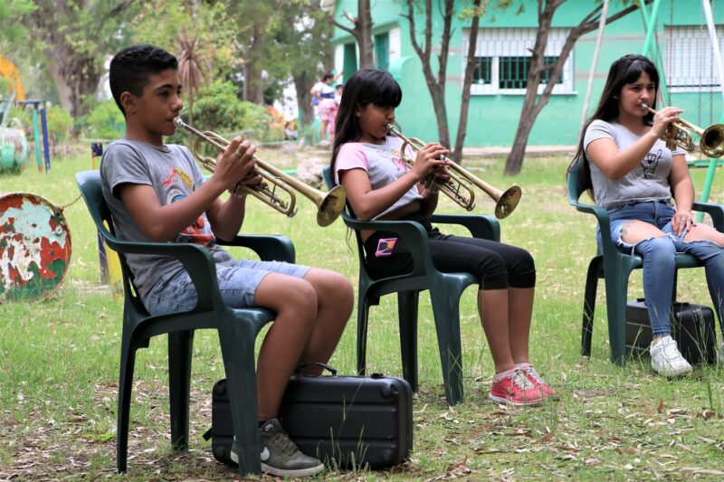 En la ciudad de Ensenada se retomaron los ensayos de la Banda Infanto Juvenil dos veces a la semana con grupos reducidos en el Parque Martín Rodríguez.