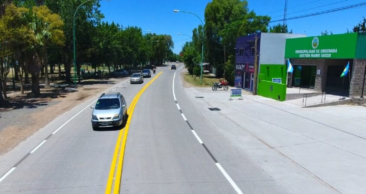 Tras la pavimentación del Camino Almirante Brown de Punta Lara, la Dirección de Vialidad bonaerense realiza los trabajos de demarcación de la calzada y de una bicisenda.