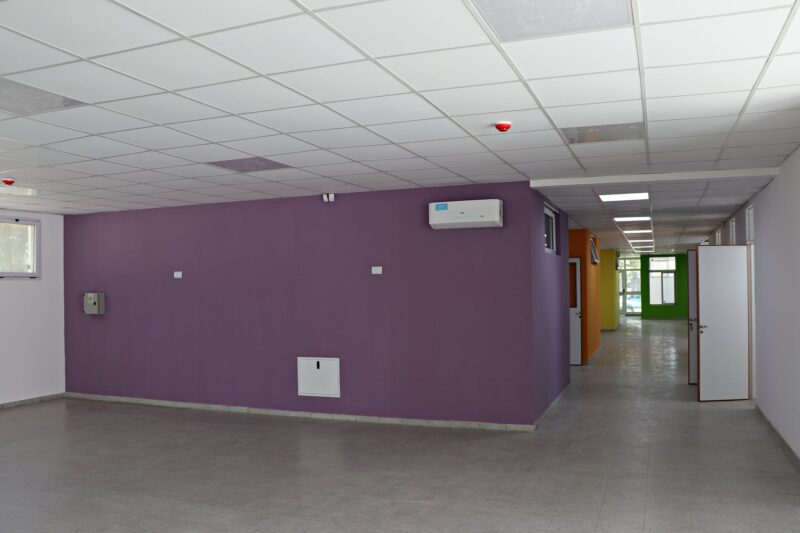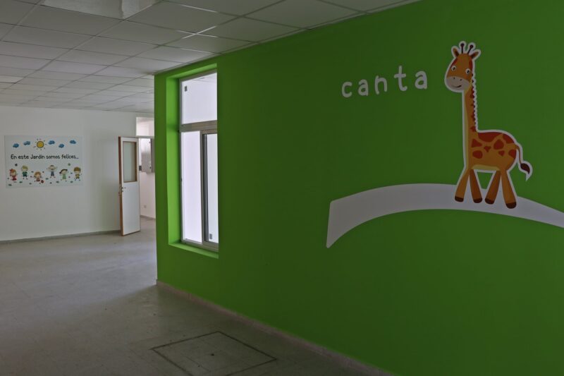 Además de tener instalados aires acondicionados en cada espacio, el Jardín cuenta con loza radiante, un sistema que permite calefaccionar desde el piso los ambientes del lugar.