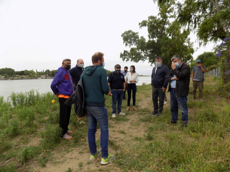 El presidente del Consorcio de Gestión del Puerto local, Pedro Wasiejko, junto al director Provincial de Evaluación de Impacto Ambiental del OPDS, Luis Mario Couyoupetrou y a la directora Provincial de Vinculación Institucional del Ministerio de Producción de la Provincia de Buenos Aires, Rocío Miranda, dialogaron con los vecinos de la Isla Paulino de la vecina ciudad de Berisso.