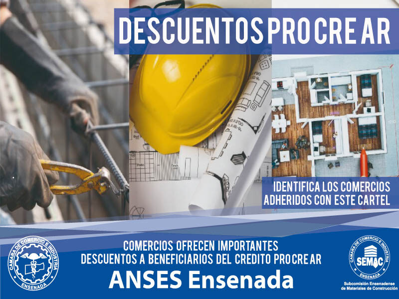 Según se supo, ya se están ofreciendo importantes descuentos a titulares del Programa PROCREAR en diferentes comercios del rubro construcción, materiales  y servicios relacionados, en los locales adheridos a la Cámara de Comercio de Ensenada.