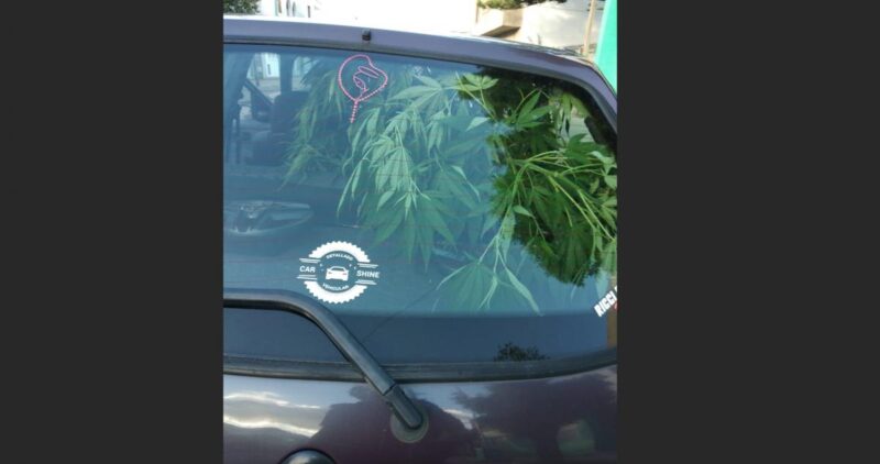 Según fuentes policiales, el episodio sucedió cuando la pareja pasó en un Ford Fiesta por el frente del Hospital Cestino y los efectivos que estaban de guardia notaron que atrás del vehículo sobresalían plantas de marihuana.