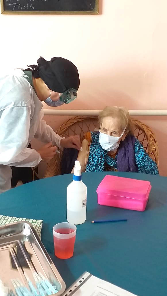 Se realizó finalmente este viernes cerca del mediodía la tan ansiada vacunación contra el Covid-19 para las y los adultos mayores alojados en el Hogar y Centro de Día Ciranda, de la calle Aristóbulo del Valle y Ferella de nuestra ciudad.