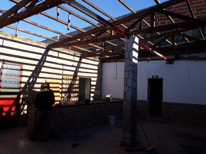 Allí, un grupo de albañiles ya trabajan en el desmonte de la vieja estructura y avanzan con la colocación de un nuevo techo que pondrá fin a uno de los inconvenientes que sufría la institución ante cada lluvia o tormenta.