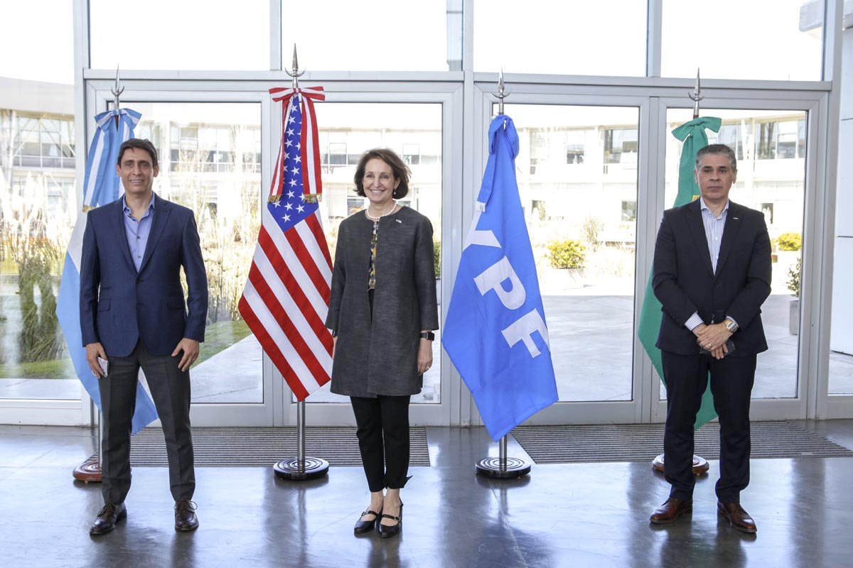 La funcionaria de la embajada de EEUU, fue recibida por el Presidente de YPF, el CEO de la compañía, Sergio Affronti y el gerente general de Y-TEC, Santiago Sacerdote, con quienes recorrió el edificio que cuenta con 47 laboratorios y 12 plantas y donde construye el futuro de una empresa que busca ser vanguardia en investigación aplicada a la transición y el cambio de la matriz: las energías renovables, el litio, el hidrógeno y hasta la provisión de servicios a otras firmas.